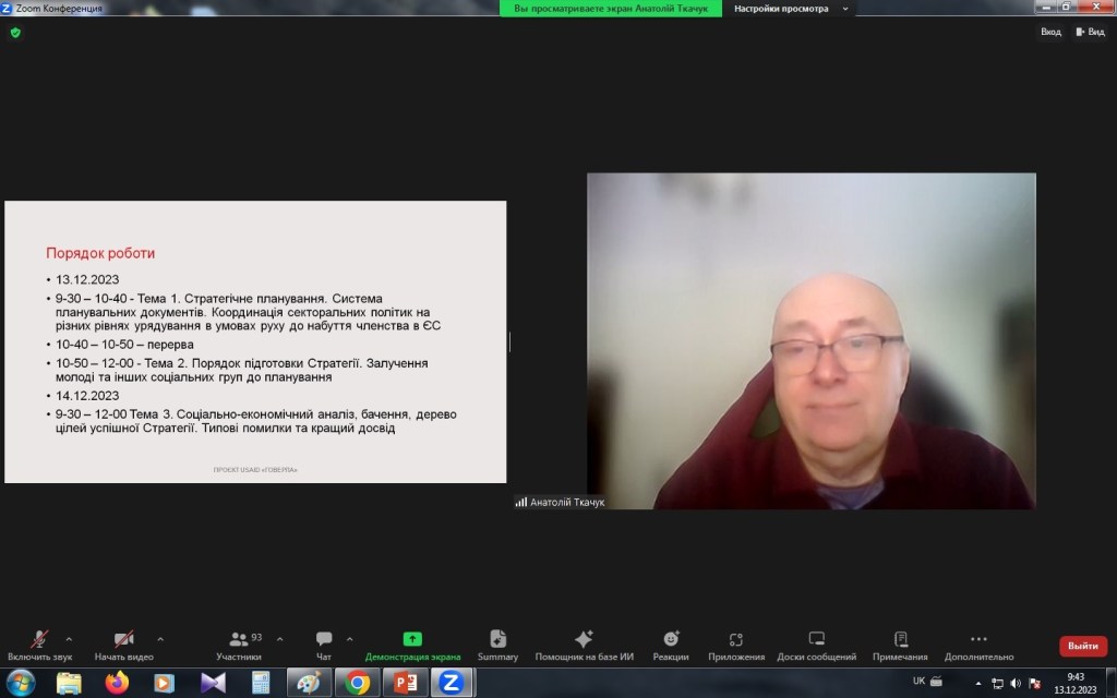 З онлайн-аудиторією працював ТКАЧУК Анатолій Федорович – директор з питань науки та розвитку ГО «Інститут громадянського суспільства», тренер, консультант зі створення спроможних громад, розробки та втілення стратегій їх розумного зростання, викладач онлайн-курсів на Prometheus: «Децентралізація в Україні – теорія та практика», «Децентралізація: від патерналізму до відповідального розвитку».