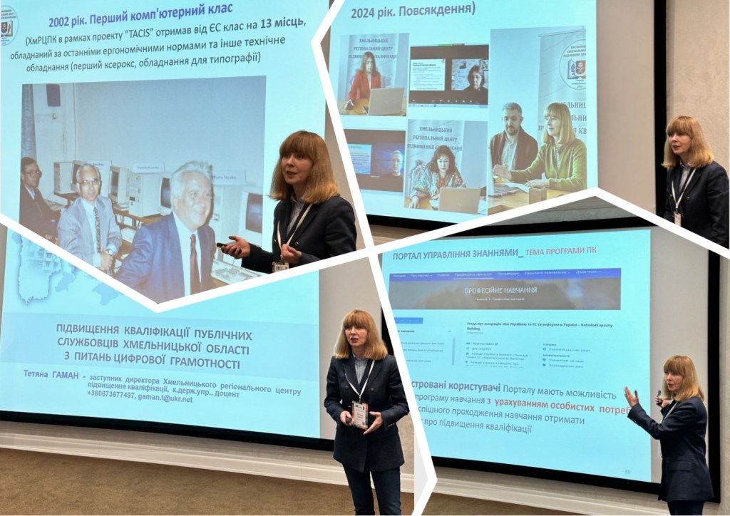 Заступник директора Центру Тетяна Гаман виступила з темою “Підвищення кваліфікації публічних службовців Хмельницької області з питань цифрової грамотності”.