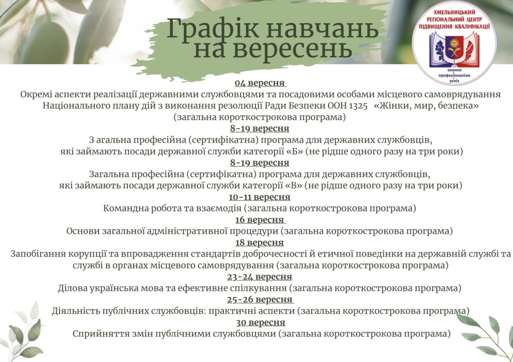 До Вашої уваги план навчань за програмами підвищення кваліфікації на вересень 2025 р.
